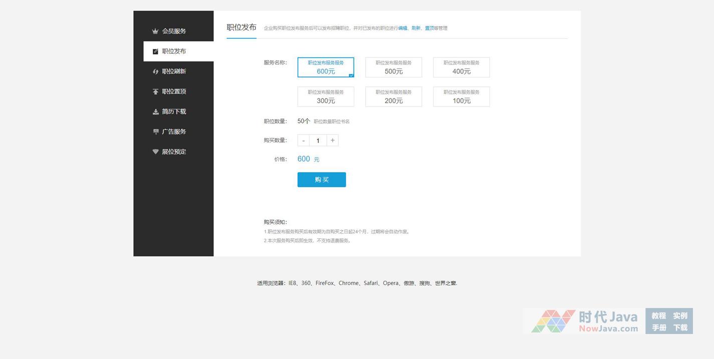 是一款常用的网站购买会员虚拟货币充值代码。本段代码可以在各个网页使用,有需要的朋友可以直接下载使用,本段代码兼容目前最新的各类主流浏览器,是一款非常优秀的特效源码!