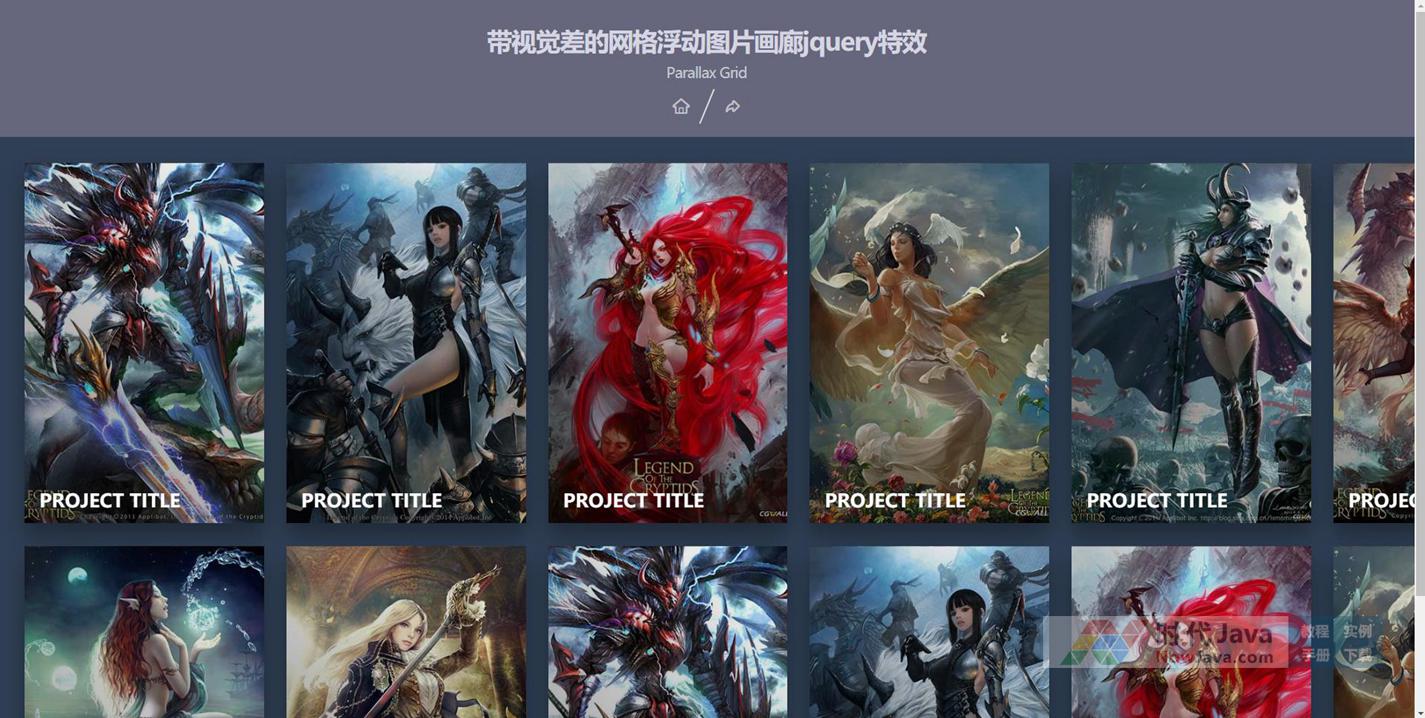 这是一款带视觉差的网格浮动图片画廊jquery特效。该图片画廊特效将图片以网格的方式进行展示。整个网格会根据鼠标的位置在屏幕中进行浮动展示,效果非常炫酷,欢迎下载!本代码适用浏览器:搜狗、360、FireFox(建议)、Chrome、Safari、Opera、傲游、世界之窗,不支持IE8及以下浏览器,首选火狐浏览器。是一款不错的的特效插件,需要的朋友可以下载!希望大家喜欢!