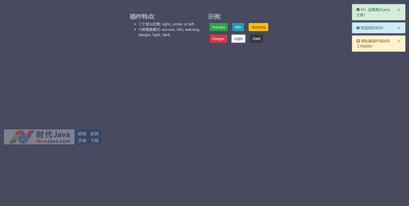jQuery基于Bootstrap制作MAC苹果系统的右上角弹出消息提示框,支持自动关闭提示消息插件。本段代码可以在各个网页使用,有需要的朋友可以直接下载使用,本段代码兼容目前最新的各类主流浏览器,是一款非常优秀的特效源码!