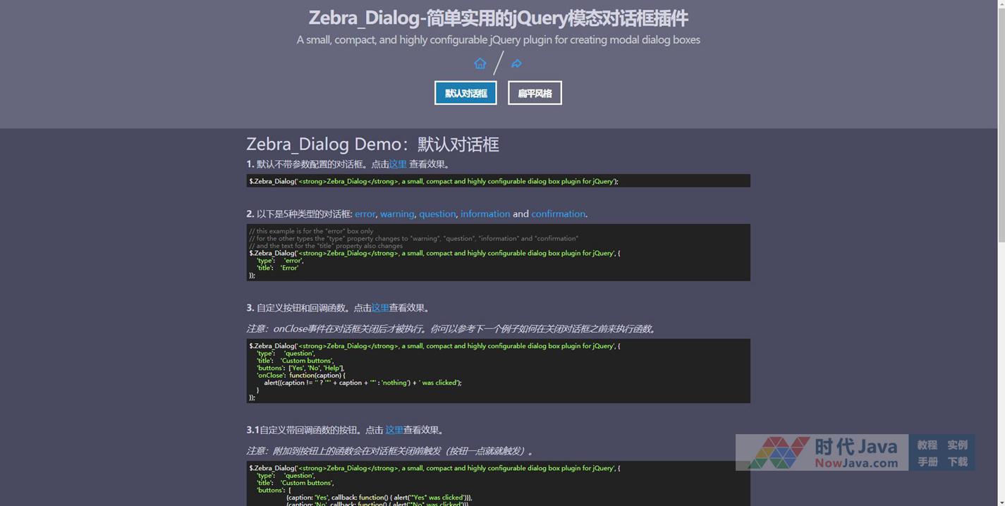 jQuery实现模态对话框特效源码是一款简单实用的jQuery模态对话框插件Zebra Dialog的代码。用它可以替代原生JavaScript的警告框和确认框,也可以用它来制作消息提示框。它兼容IE6+浏览器,支持Ajax加载内容和iFrame框架等。本代码适用浏览器:搜狗、360、FireFox、Chrome、Safari、Opera、傲游、世界之窗. 不支持IE8及以下浏览器。有兴趣的朋友们可以来下载试试吧。本段代码兼容目前最新的各类主流浏览器,是一款非常优秀的特效源码。希望大家可以喜欢!