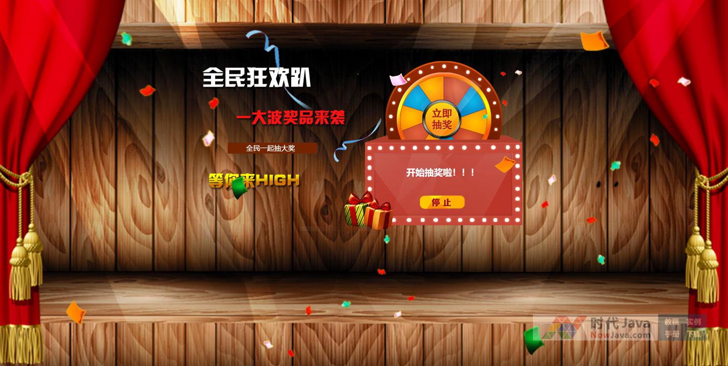 这是一款基于JS实现的随机文字抽奖功能源码。整体画面效果美观大气,点击中心的抽奖按钮则下方呈现出各个奖品结果文字快速变换的效果。再点击停止按钮即可完成抽奖功能,显示出抽奖结果。该源码兼容目前最新的各类主流浏览器。