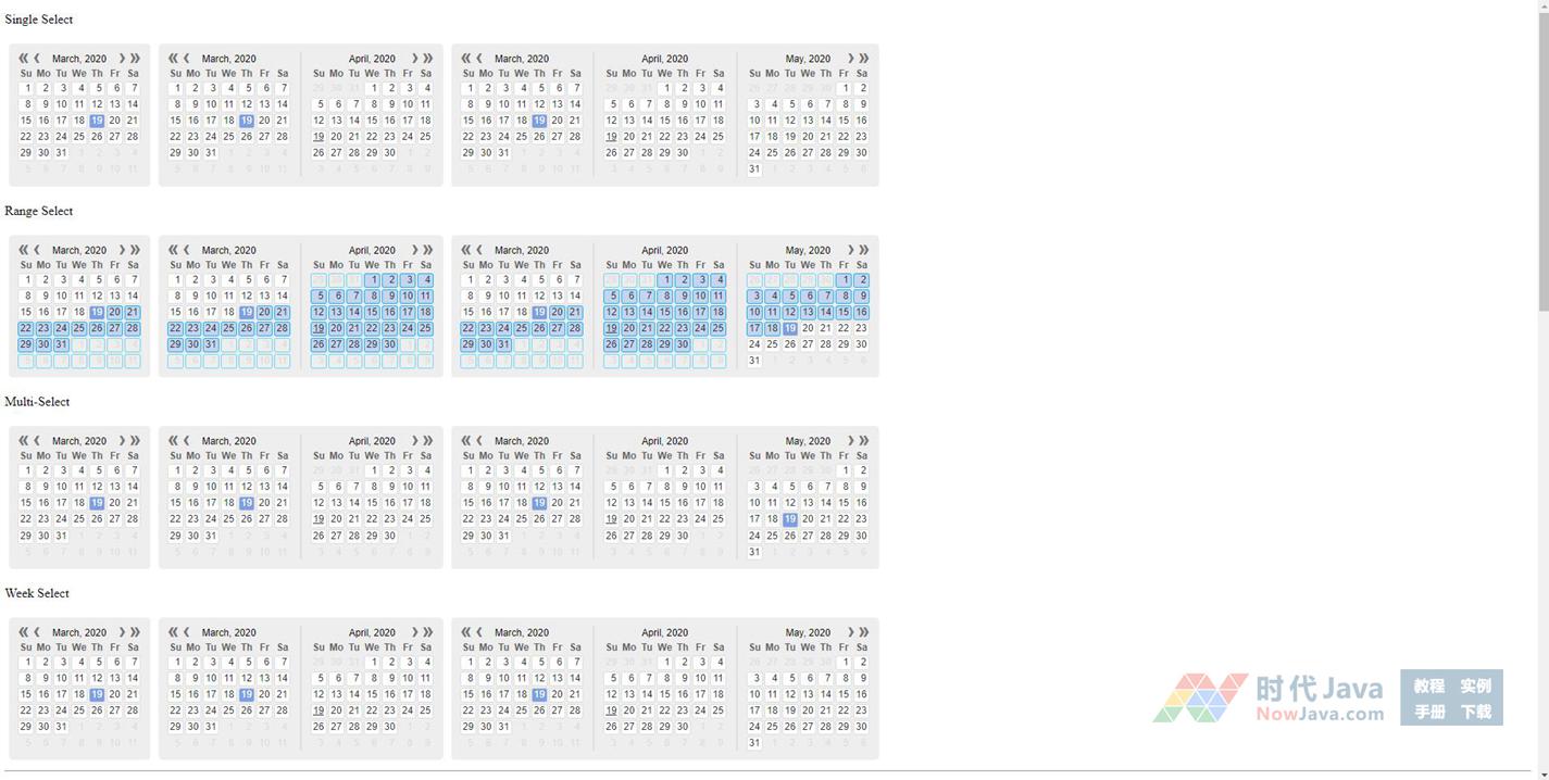 这是一款简单而实用的JavaScript日期选择控件,名叫Kalendae。它的外观虽然很普通,但是功能很强大,不仅可以当日历组件,也可以当做日期选择控件。点击即可实现日期的单选或全部选择,而且可以同时展示多个日期选择控件,效果非常不错。源码兼容性好,可兼容目前最新的各类主流浏览器。