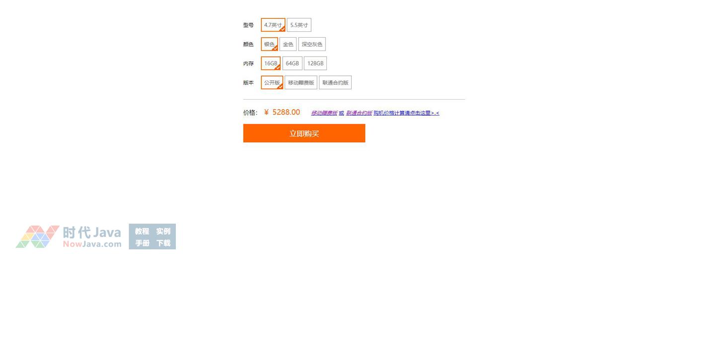 这是一款基于原生js实现仿淘宝手机信息购买选项效果源码,界面整体效果仿照淘宝购物选项设计,点击不同选项还可实时显示不同的价格计算结果,界面简洁大方、美观实用。可兼容目前最新的各类主流浏览器。