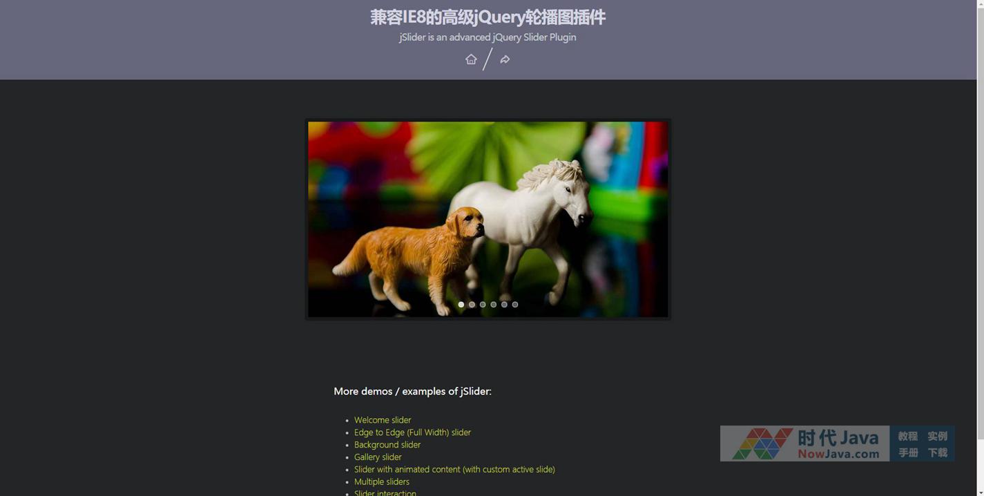 jSlider是一款可兼容IE8的高级jQuery轮播图插件。jSlider轮播图插件的特点是轻量级,使用简单,跨平台。通过jSlider你可以非常容易的而在网页中实现任何轮播图效果。简单实用,欢迎下载!