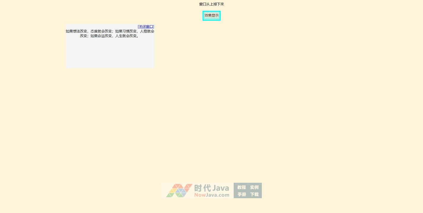 JS从网页上部掉下一个弹出层带有缓冲弹跳可关闭