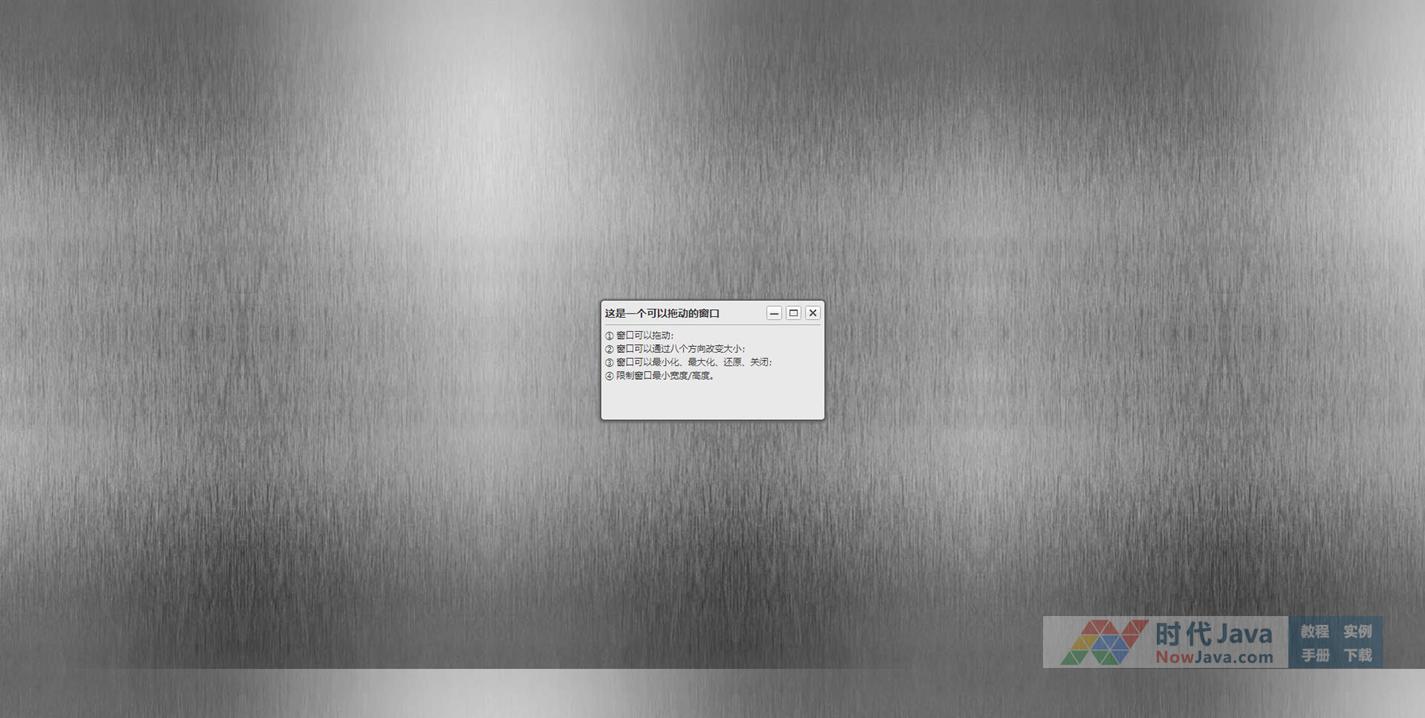 js可拖拽最大最小化弹出层窗口是一款窗口可以拖动,可以通过八个方向改变大小,可以最小化、最大化、还原、关闭,支持限制窗口最小宽度高度。经测试效果相当不错,作者推荐下载。