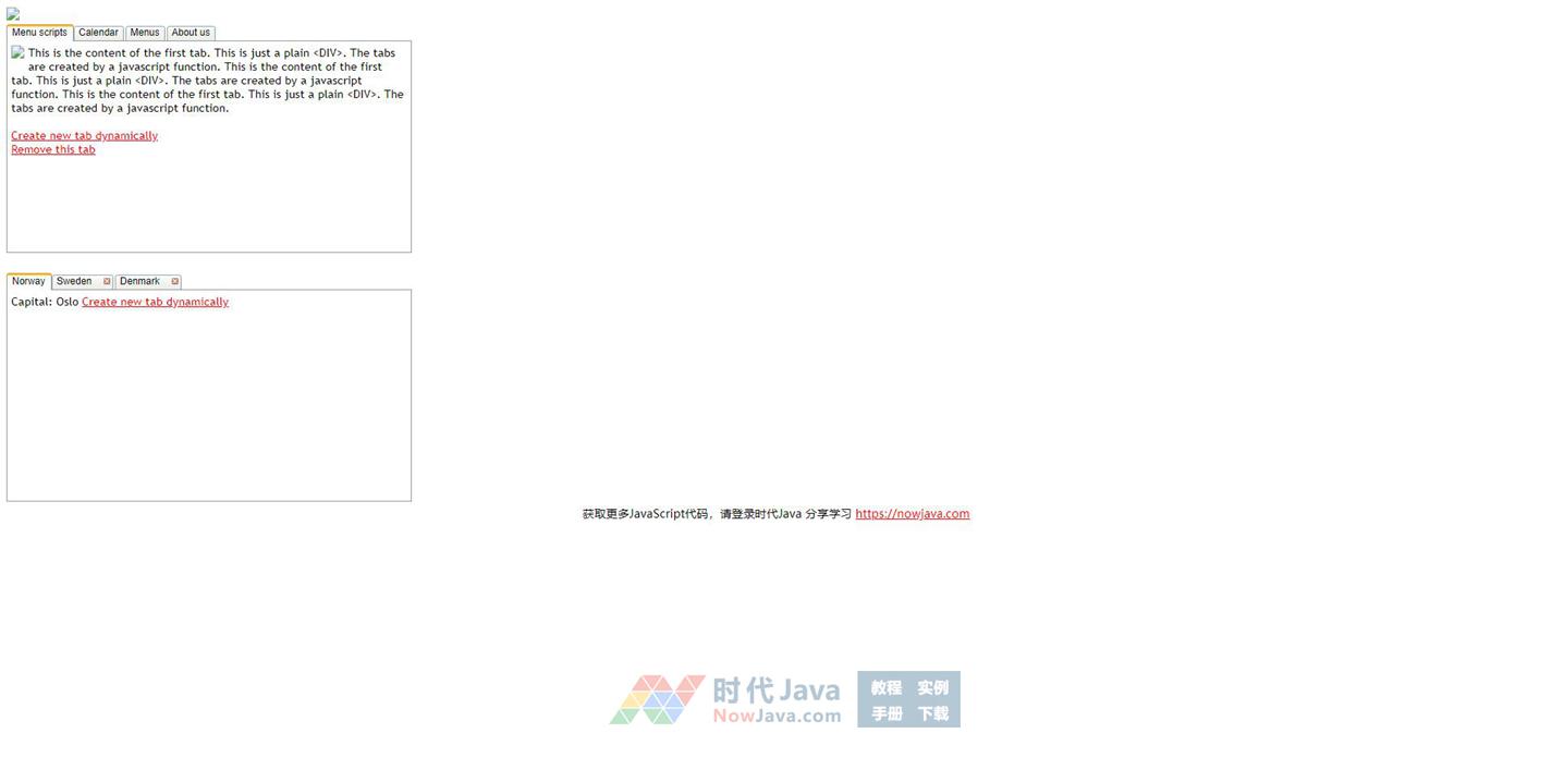 删除Tab 通过deleteTab(tab的标题)函数删除Tab. 参数为Tab的标题,如: deleteTab('Menu scripts');