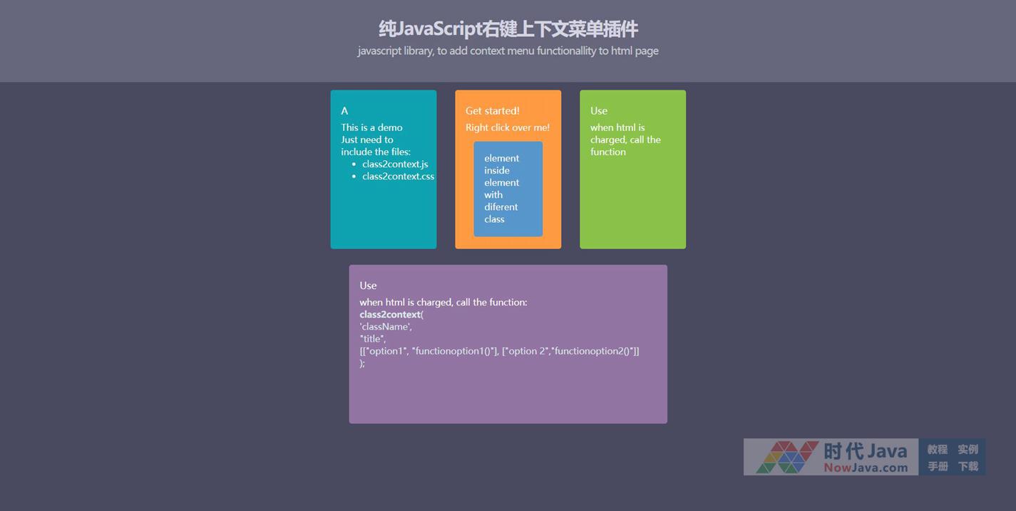 class2context是一款非常实用的纯JavaScript右键上下文菜单插件。该右键菜单插件使用简单,性能高,通过简单的js语句即可完成右键菜单的配置。本段代码适应于所有网页使用,有需要的朋友可以直接下载使用,本段代码兼容目前最新的各类主流浏览器,是一款非常优秀的特效源码!