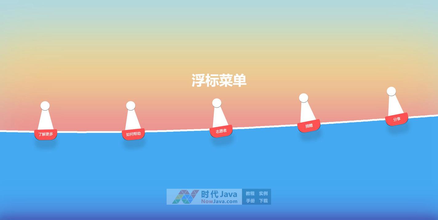 js css3绘制海面上漂浮的浮标菜单,点击弹出窗口信息特效。非常不错,感兴趣的朋友前来下载使用。建议使用支持js+css效果较好的火狐(Firefox)或谷歌(Chrome)等浏览器预览本源码。