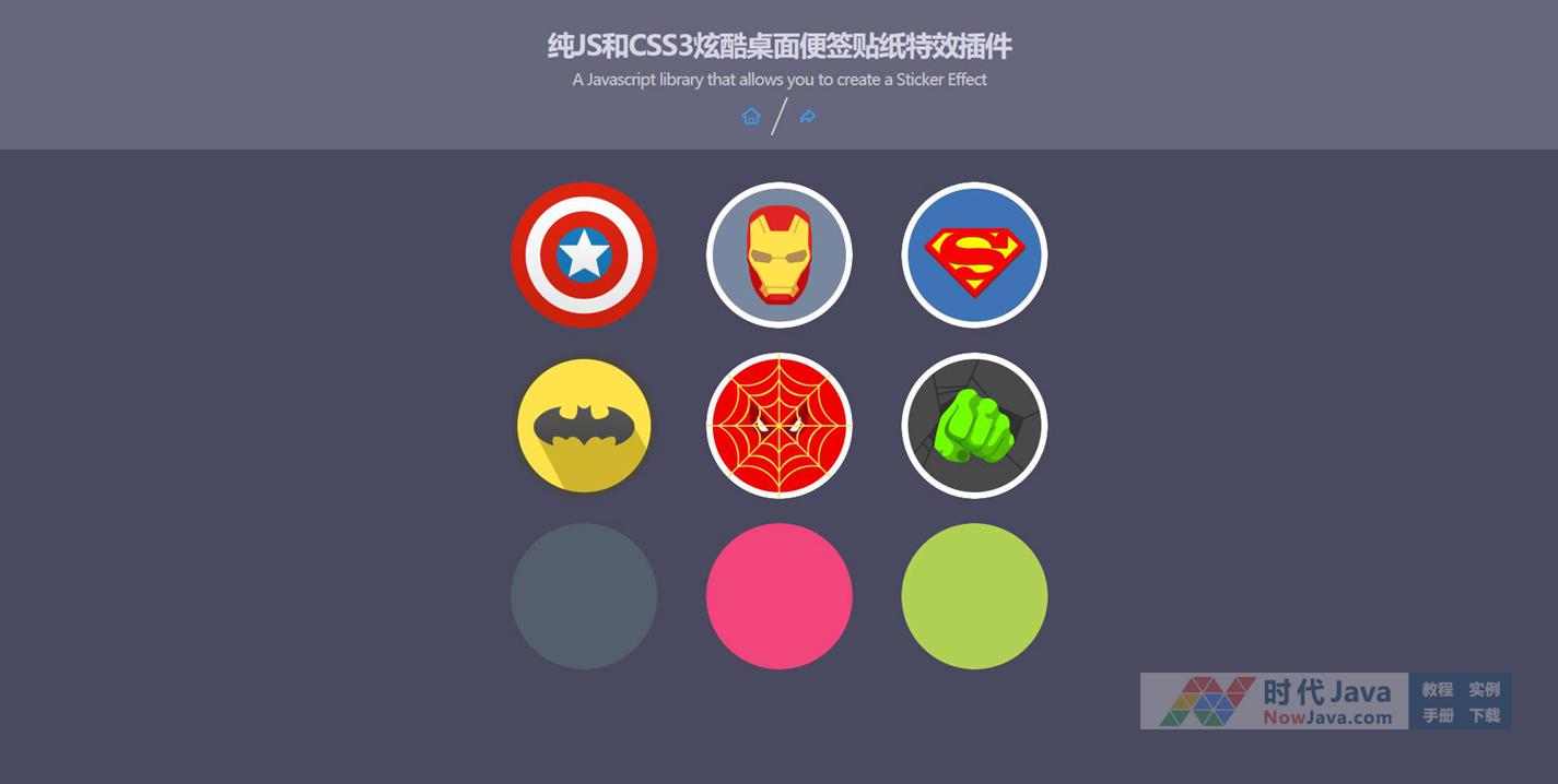 本特效代码是一款基于使用纯JavaScript和CSS3来制作炫酷桌面便签贴纸特效的插件Sticker.js的特效。通过该插件可以将任何块级元素转换为桌面便签,并且在鼠标滑过便签时,便签会随着鼠标移动产生卷纸弯曲效果,非常的酷。本代码适用浏览器:搜狗、360、FireFox、Chrome、Safari、Opera、傲游、世界之窗,不支持IE8及以下浏览器。有兴趣的朋友们可以来下载试试吧。本段代码兼容目前最新的各类主流浏览器,是一款非常优秀的特效源码。希望大家可以喜欢!