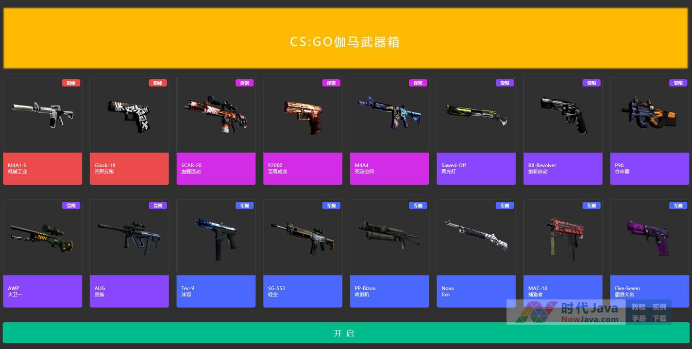原生JS制作开箱随机抽奖小游戏,思路比较简单,十分实用!您可以随意定制抽奖奖品,点击开启按钮,箱子筛选随机产生中奖结果弹窗提示。ps:演示内容无任何含义。建议使用支持js效果较好的火狐(Firefox)或谷歌(Chrome)等浏览器预览本源码。