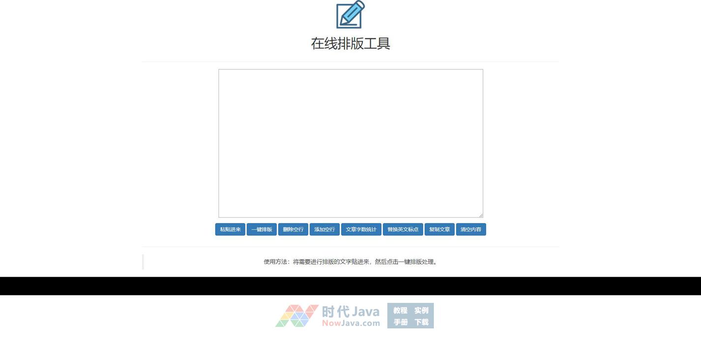 使用方法:将需要进行排版的文字,贴进来,然后点击一键排版处理。