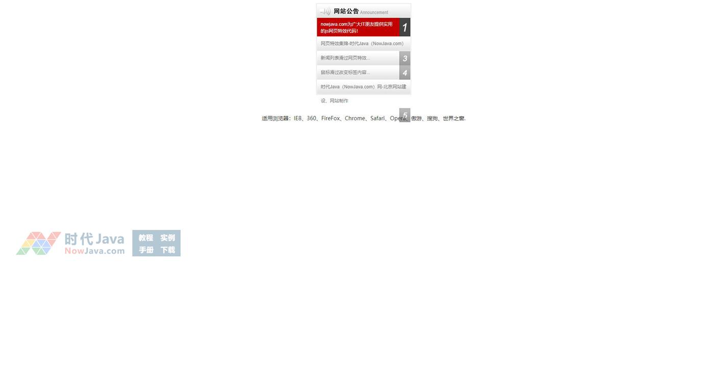 是一个当鼠标在文字公告标题上停留时会显示详细的简介的代码。本段代码适应于所有网页使用,有兴趣的朋友们可以来下载试试吧。本段代码兼容目前最新的各类主流浏览器,是一款非常优秀的特效源码。希望大家可以喜欢!