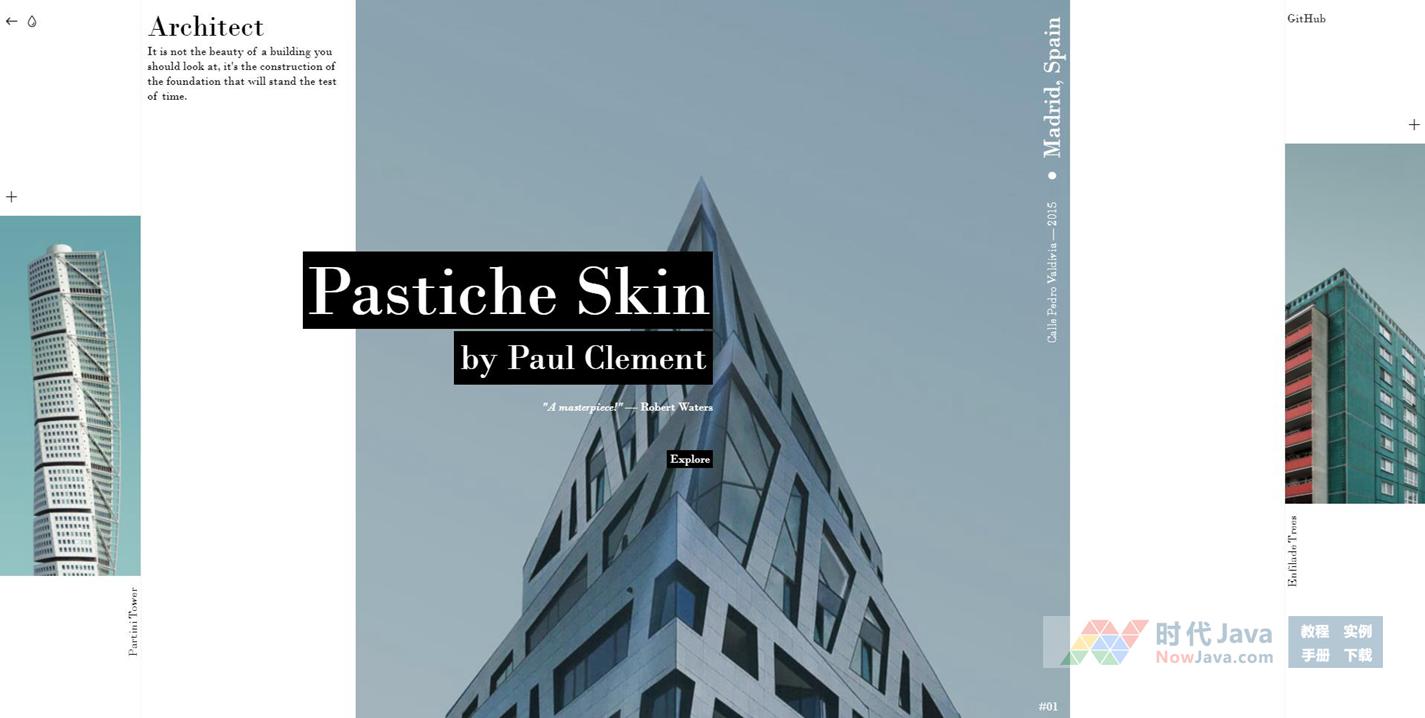 另外,该特效中还带有鼠标hover时的图片放大效果。鼠标移动到“Explore”超链接上,图片就会稍稍的放大。