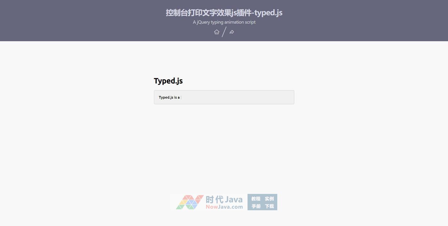 typed.js是一款模拟控制台打印文字效果的js插件。typed.js可以自由的控制要打印的文字,以及打印的速度等,可以制作出逼真的打印文字效果。本段代码兼容目前最新的各类主流浏览器,适用浏览器:搜狗、360、FireFox(建议)、Chrome、Safari、Opera、傲游、世界之窗,不支持IE8及以下浏览器,首选火狐浏览器。是一款不错的的特效插件,需要的朋友可以下载!希望大家喜欢!