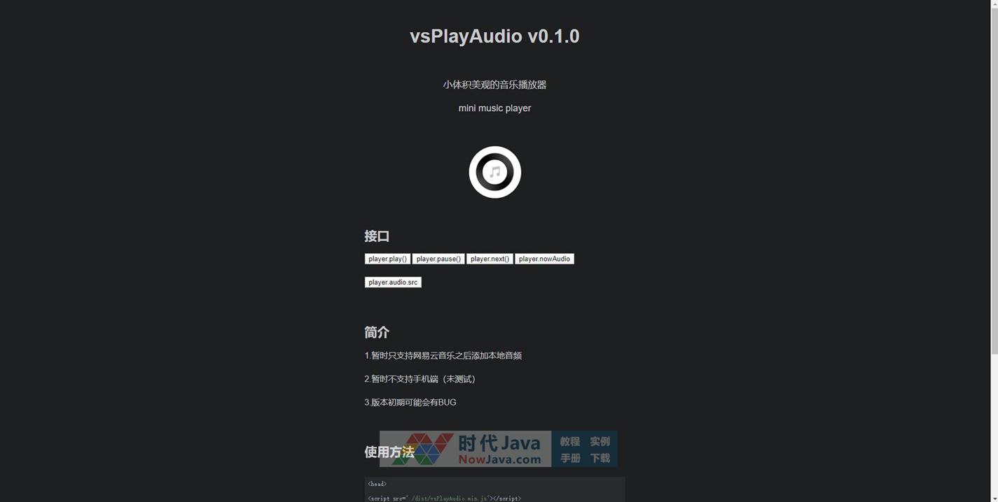 JS音乐在线播放插件vsPlayAudio是一款原生js制作网易云音乐歌单调用接口,只需修改source属性对应的网易云音乐歌单id即可完成歌单替换,非常实用,欢迎有需要的朋友前来下载使用。