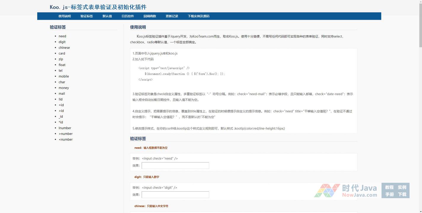 一款傻瓜式的表单验证插件koo.js升级版,Koo.js-标签式表单验证及初始化插件及演示实例下载,Koo.js标签验证插件基于Jquery开发,为KooTeam.com而生,取名Koo.js。使用十分简便,不需写任何代码即可实现各种的表单验证,同时支持select,checkbox,radio等默认值,一个标签全部搞定,有需要的朋友可以参考下