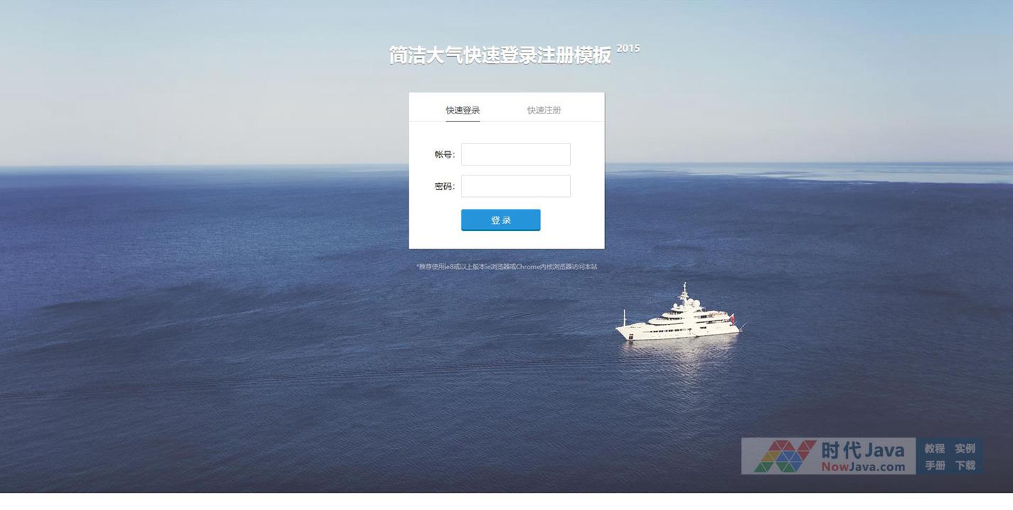 基于jquery-1.9.0.min.js制作,响应式设计,自适应屏幕分辨率,有快速登录和快速注册两种表单。本段代码适应于所有网页使用,有兴趣的朋友们可以前来下载使用。本段代码兼容目前最新的各类主流浏览器,是一款非常优秀的特效源码。