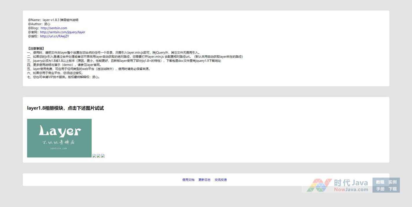 使用组件时,请将layer整个文件夹放置您项目的任何一个目录下,请务必不要移动layer默认的文件结构,否则将无法运行。部署完后,您只需在页面引入layer.min.js即可(别忘了引入jquery,必须使用jquery1.8或以上)