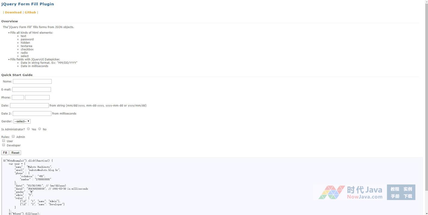 通过json数据辅助动态填充表单的jquery插件jquery.formfill.js