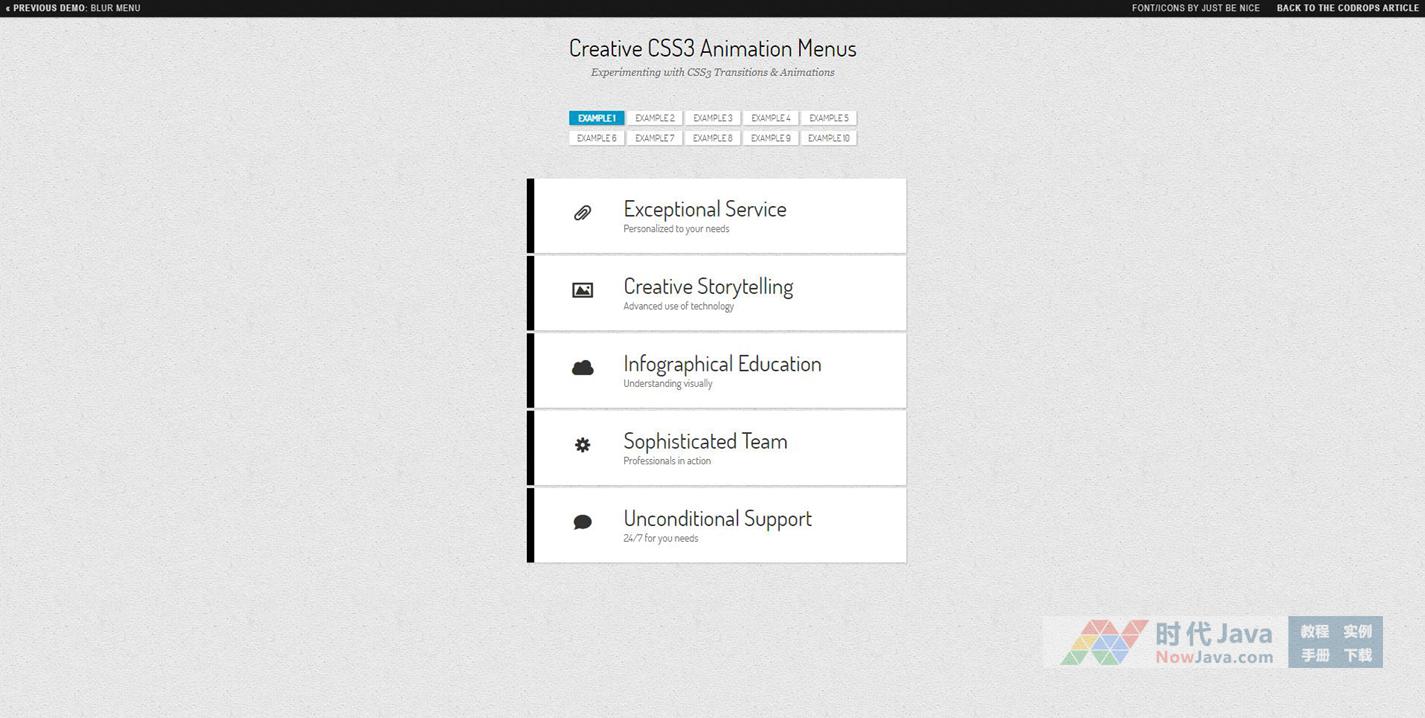 10款用特殊符号做成的jQuery菜单,CSS3+jQuery仿flash动感菜单效果,每一款都有不同的形式,不动的动画风格,尤其是网页上特殊符号的应用淋漓尽致,一共有10款菜单,确实不错,你可以试试看。