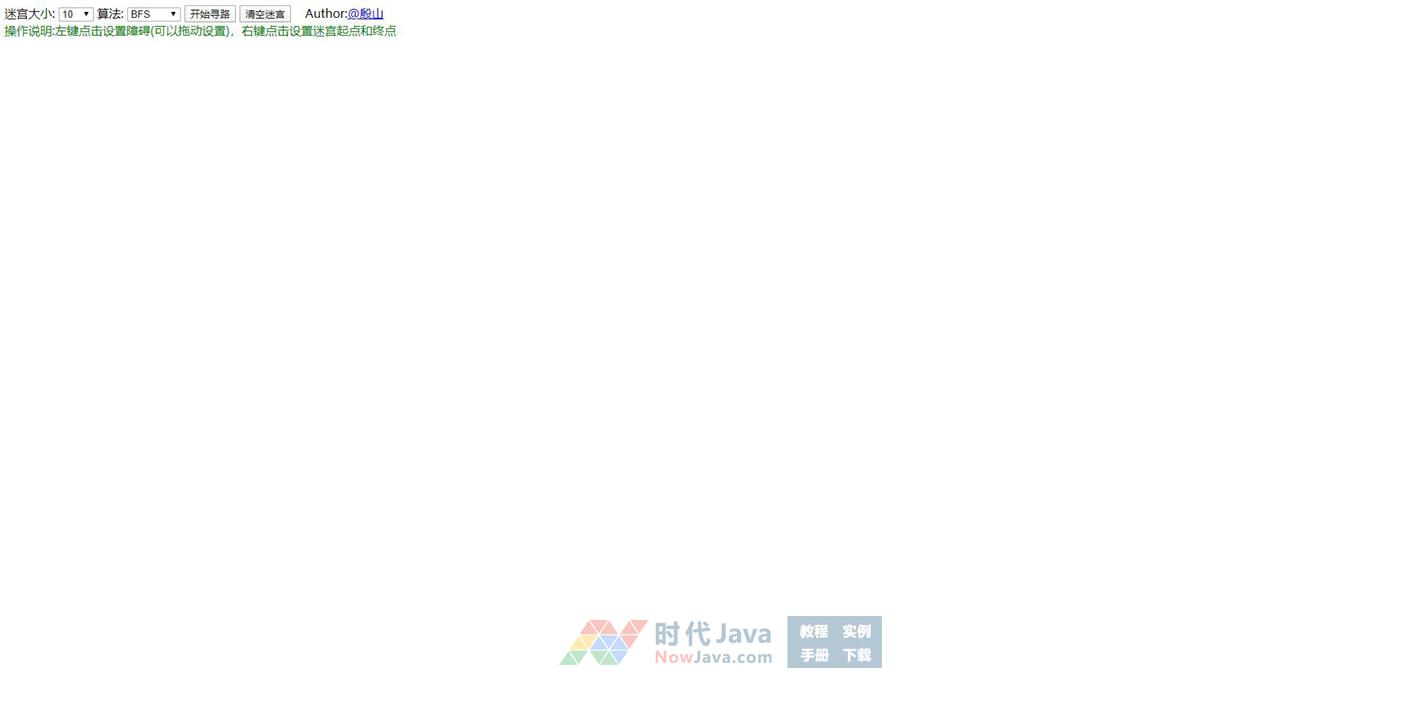 操作说明:左键点击设置障碍(可以拖动设置),右键点击设置迷宫起点和终点。请使用火狐浏览