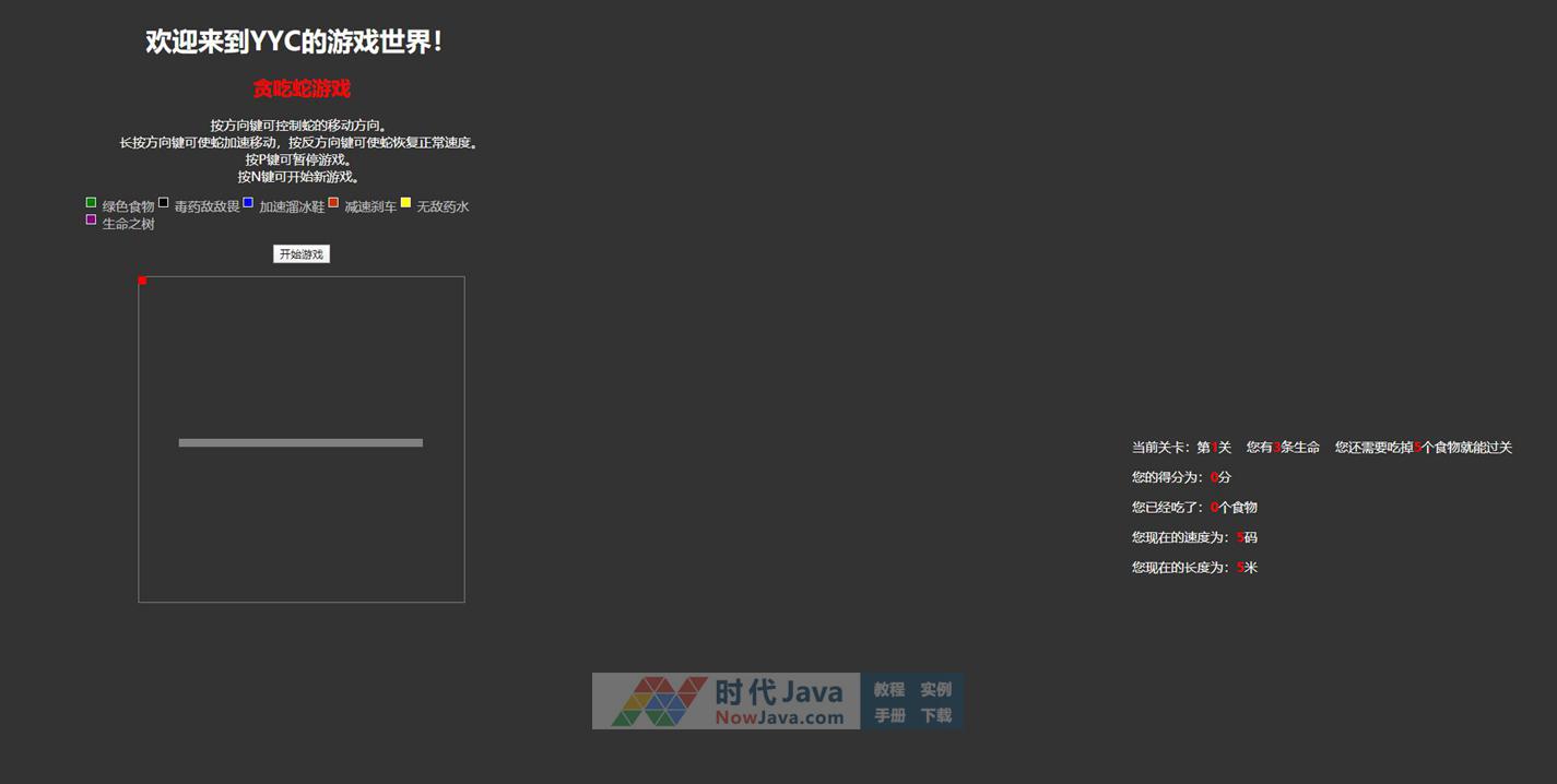 附上操作指南:按方向键可控制蛇的移动方向。长按方向键可使蛇加速移动,按反方向键可使蛇恢复正常速度。按P键可暂停游戏。按N键可开始新游戏。