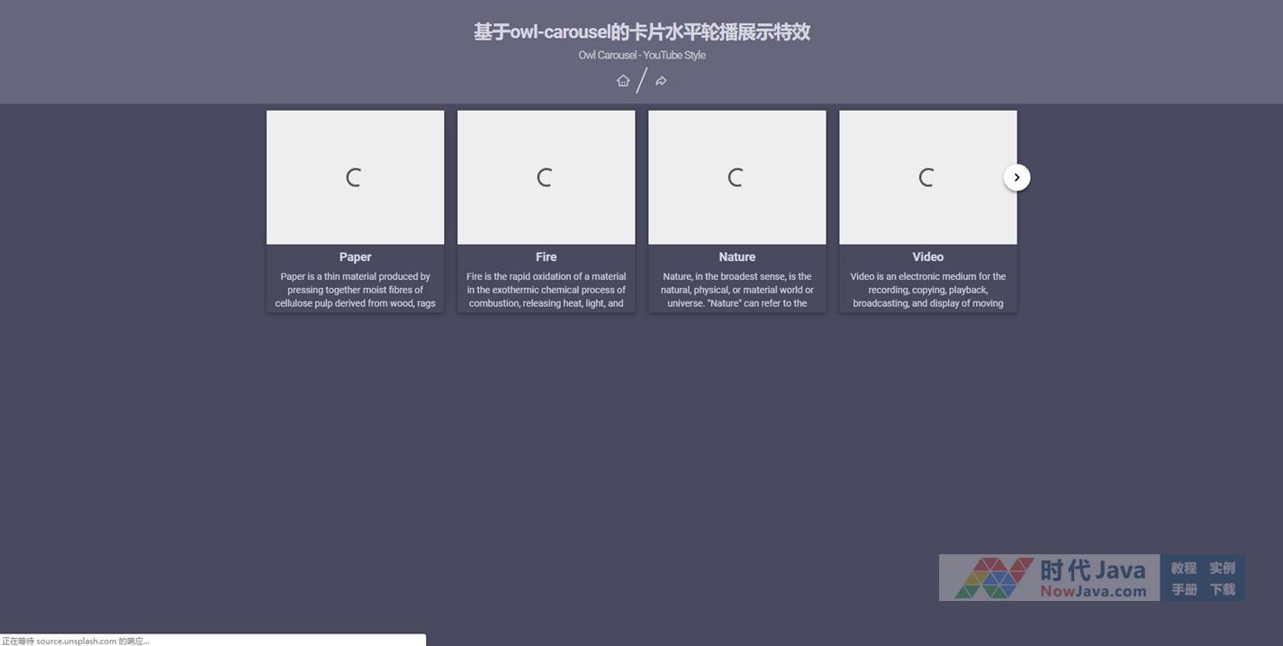 这是一款基于owl-carousel的卡片水平轮播展示特效代码。该卡片轮播展示特效可以通过前后导航按钮来切换卡片,它是响应式设计,在手机等小屏幕设备上,会自动调节为只展示一个卡片。本代码适用浏览器:搜狗、360、FireFox(建议)、Chrome、Safari、Opera、傲游、世界之窗,不支持IE8及以下浏览器,首选火狐浏览器。是一款不错的的特效插件,需要的朋友可以下载!希望大家喜欢!