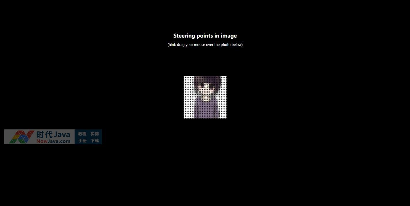 这是一款基于P5.js实现的鼠标交互式图像粒子化特效源码。画面中心是一幅粒子化组成的图片效果,各个彩色粒子有序排列形成一幅卡通少女的图案。当鼠标滑过时,出现粒子炸开的动画视觉效果。建议使用支持HTML5与css3效果较好的火狐(Firefox)或谷歌(Chrome)等浏览器预览本源码。