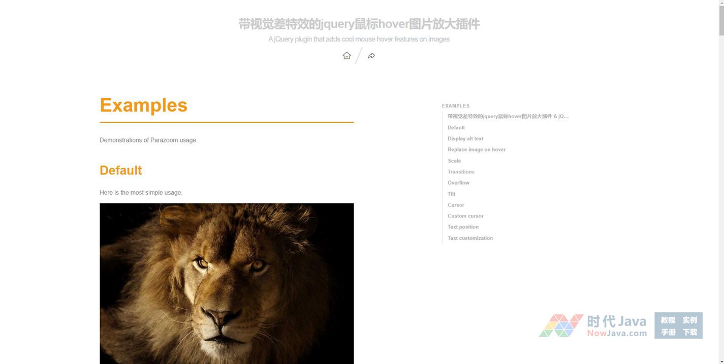 该jquery鼠标hover图片放大插件的github地址为:https://github.com/olivier3lanc/Parazoom