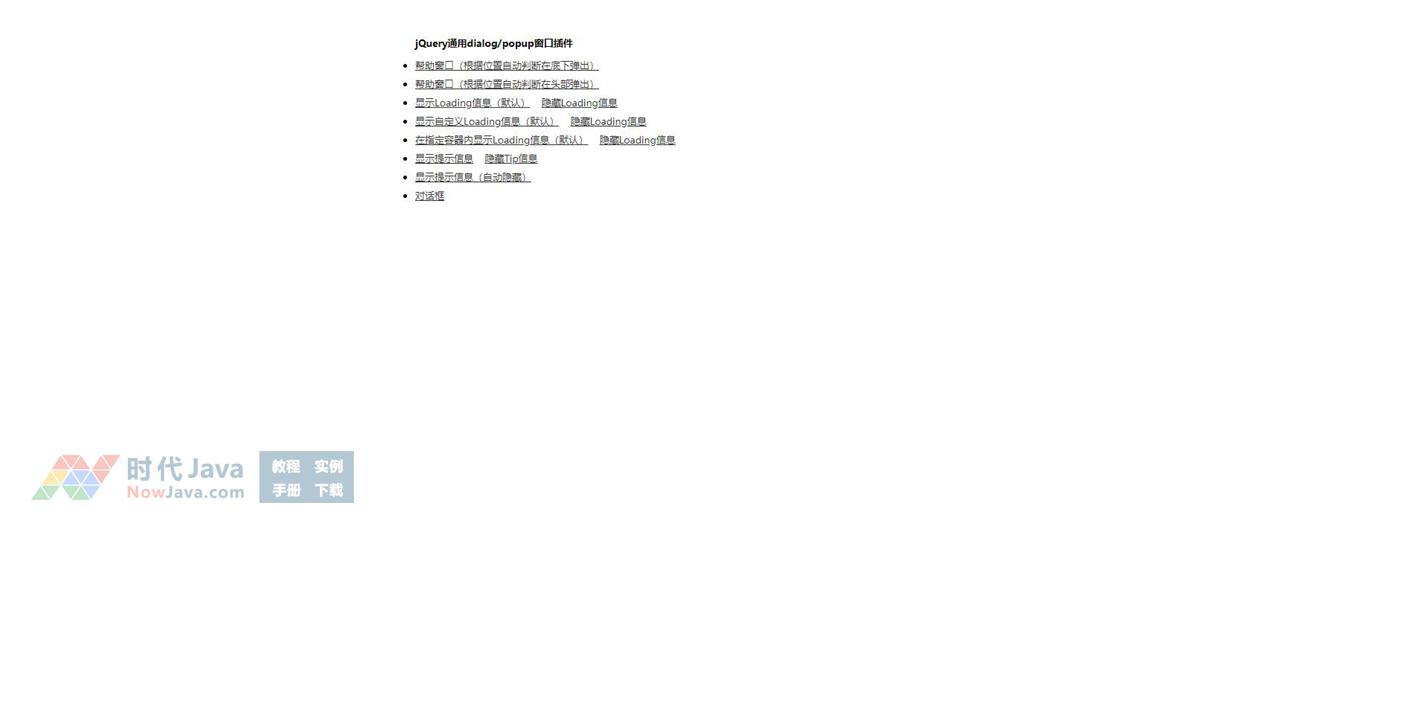 jQuery 通用dialog/popup弹出层,提示窗口插件,包括有弹出自定义的帮助窗口(根据位置自动判断在底部或头部弹出)、显示和隐藏Loading信息、显示自定义Loading信息、在指定容器内显示Loading信息、显示和隐藏Tip信息,弹出对话框等、无刷新加载等待状态提示等。