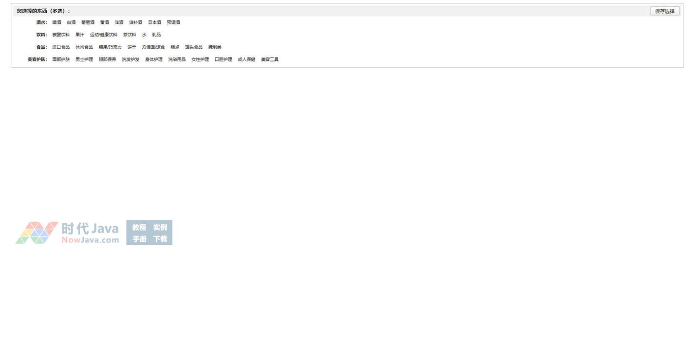 property selector jQuery商品属性选择器,可以连续多重选择商品,基于Ajax的商品选择,选中的商品自动归类的已选择类别内,不错的功能,目前不少大网站都开始使用此种功能。对property selector jQuery商品选择器感兴趣的朋友可以测试下。