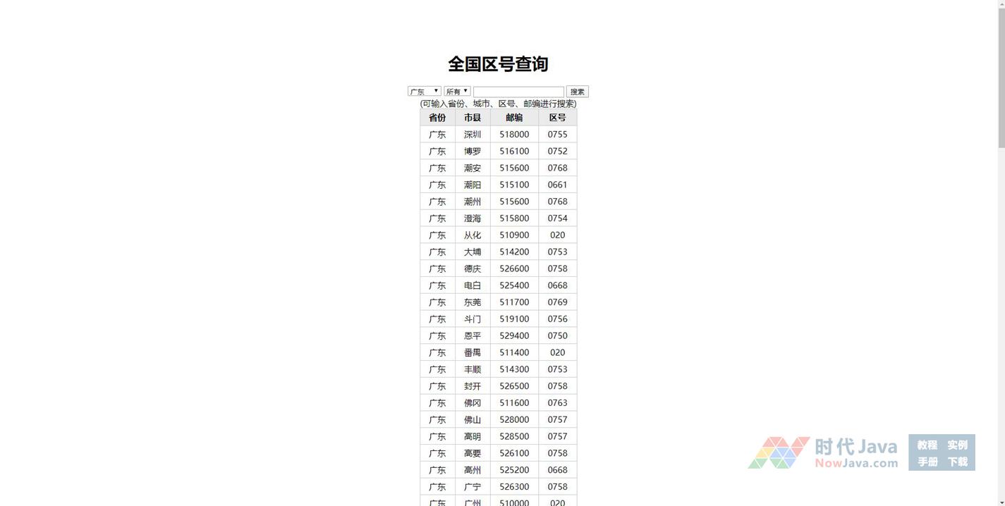 基于jquery的无刷新区号查询系统