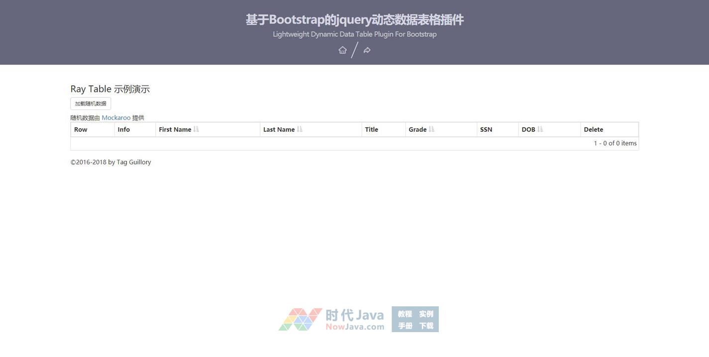 raydreams.js插件是一款基于Bootstrap的jquery动态数据表格插件。该jquery动态数据表格的特点是使用简单,它能通过json动态加载表格所需的数据,并通过配置参数设置表格列是否排序和添加功能按钮等。简单实用,欢迎下载!