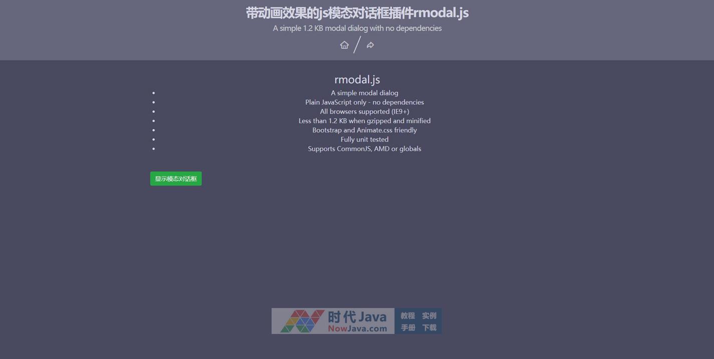 rmodal.js是一款带动画效果的js模态对话框插件。rmodal.js模态对话框插件压缩版本仅1.2kb,没有任何外部依赖,可以制作出带动画特效的模态对话框效果。