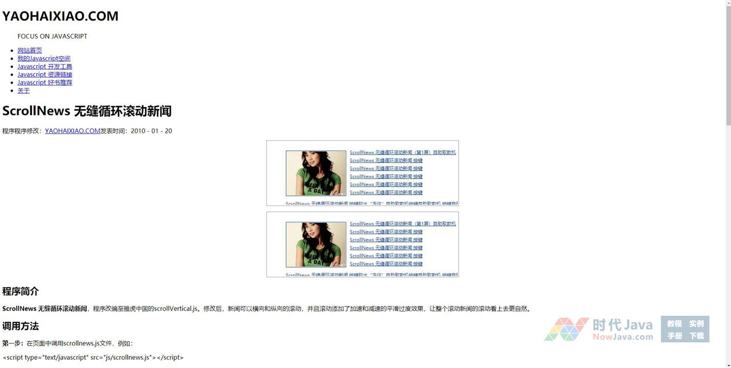 ScrollNews 新闻无缝循环滚动切换特效,不错的滚动效果,压缩包内的示例包括横向和竖向两种形式的滚动,本滚动结合图片和文字,运用CSS和Javascript技术,将滚动的内容扩展至DIV标签,也就是控制某个区域的滚动,而并非是一行或几个简单图片构成的滚动。
