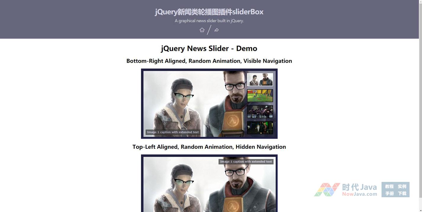 sliderBox.js是一个基于jQuery的新闻类轮播图特效插件。该jQuery新闻类轮播图插件可以创建兼容ie8、带缩略图导航、以及多种过渡效果的轮播图。炫酷简单,欢迎下载!