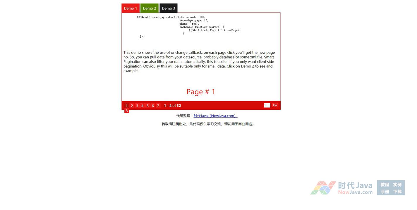 非常智能漂亮的jquery分页效果插件,通过此插件可以在客户端很容易实现分页效果,色彩丰富,经测试效果也非常不错,代码页码输入框。