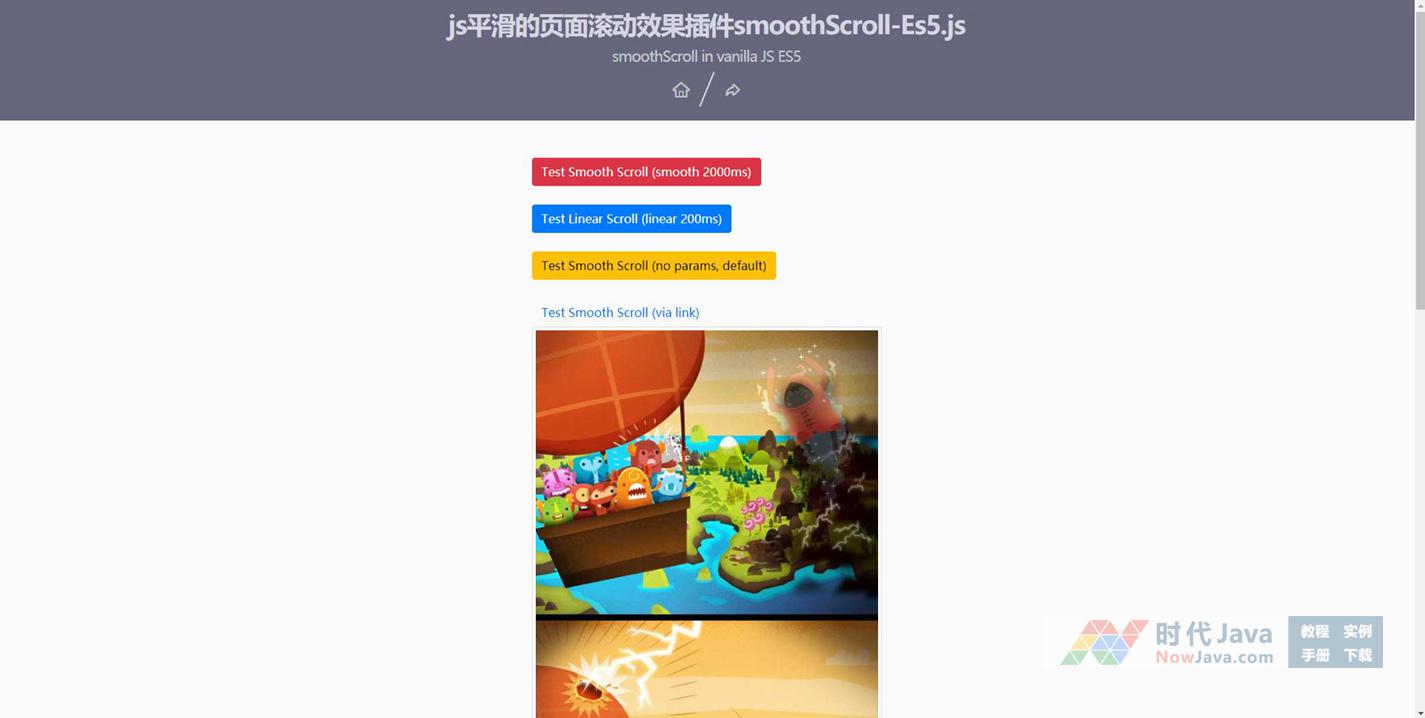 smoothScroll-Es5.js是一款js平滑的页面滚动效果插件。通过它可以制作页面锚链接之间的平滑滚动效果,和平滑的返回页面顶部效果等。非常逼真炫酷,推荐下载哦!本代码适用浏览器:搜狗、360、FireFox(建议)、Chrome、Safari、Opera、傲游、世界之窗,不支持IE8及以下浏览器,首选火狐浏览器。是一款不错的的特效插件,需要的朋友可以下载!希望大家喜欢!