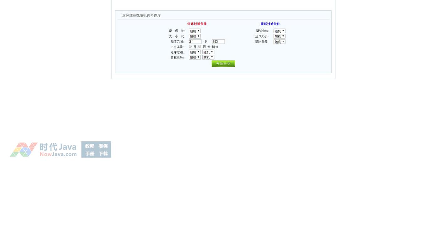 一直觉得彩票售票点的随机选号不是真正随机的,买过3注随机竟然连一个数字都没中,运气也特么差了,再有一个疑点就是双色球提前两小时停止销售,里面会不会有猫腻?不说别的了,言归正传,下面发一个html+java写的双色球随机选号程序,免费下载使用