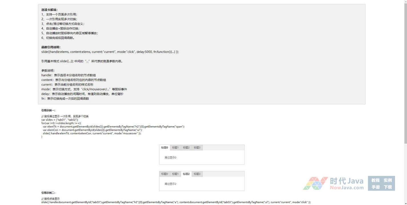 3、点击/滑过等切换方式自定义;