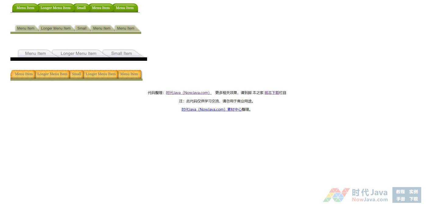 纯CSS实现的4中tab标签风格的导航菜单效果