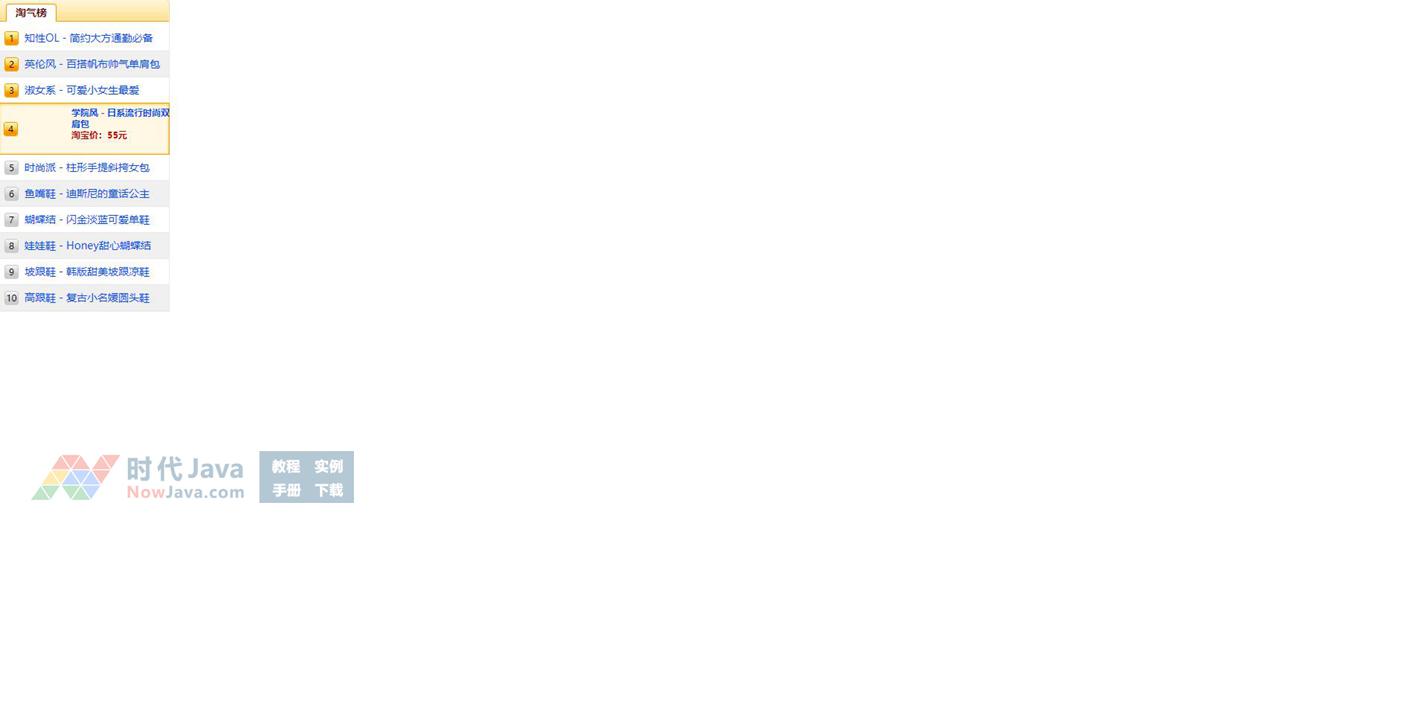 基于jquery的带切换效果的淘宝网商品排行展示