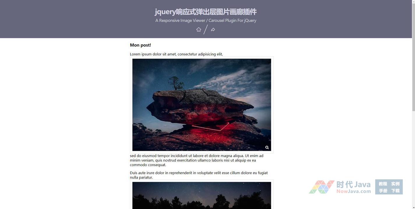 tekitizy carousel是一款jquery响应式弹出层图片画廊插件。该弹出层图片画廊可以将页面中所有带相同class类的图片制作为一个无限循环的旋转木马效果。欢迎下载使用!