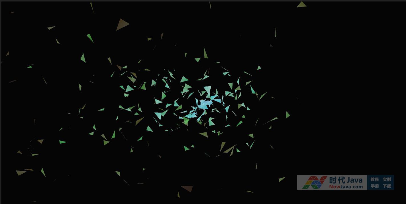这是一款基于Three.js实现飘舞的三角形多彩纸片动画效果源码。画面中呈现出五彩变换的三角形纸片从一个中心节点井喷而出,再迎风飘散的动画视觉效果。且纸片不断地变换着颜色。整体画面效果类似节日庆祝的纸片井喷动画特效。建议使用支持HTML5与css3效果较好的火狐(Firefox)或谷歌(Chrome)等浏览器预览本源码。