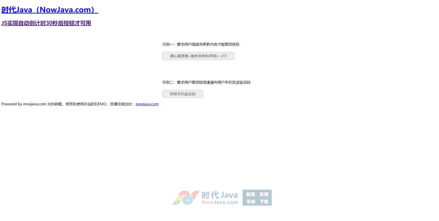 WEB开发中经常会用到倒计时来限制用户对表单的操作,比如希望用户在一定时间内看完相关协议信息才允许用户继续下一步操作,又比如在收取手机验证码时允许用户在一定时间过后(未收到验证码的情况下)再次获取验证码,非常实用,欢迎小伙伴下载源码。