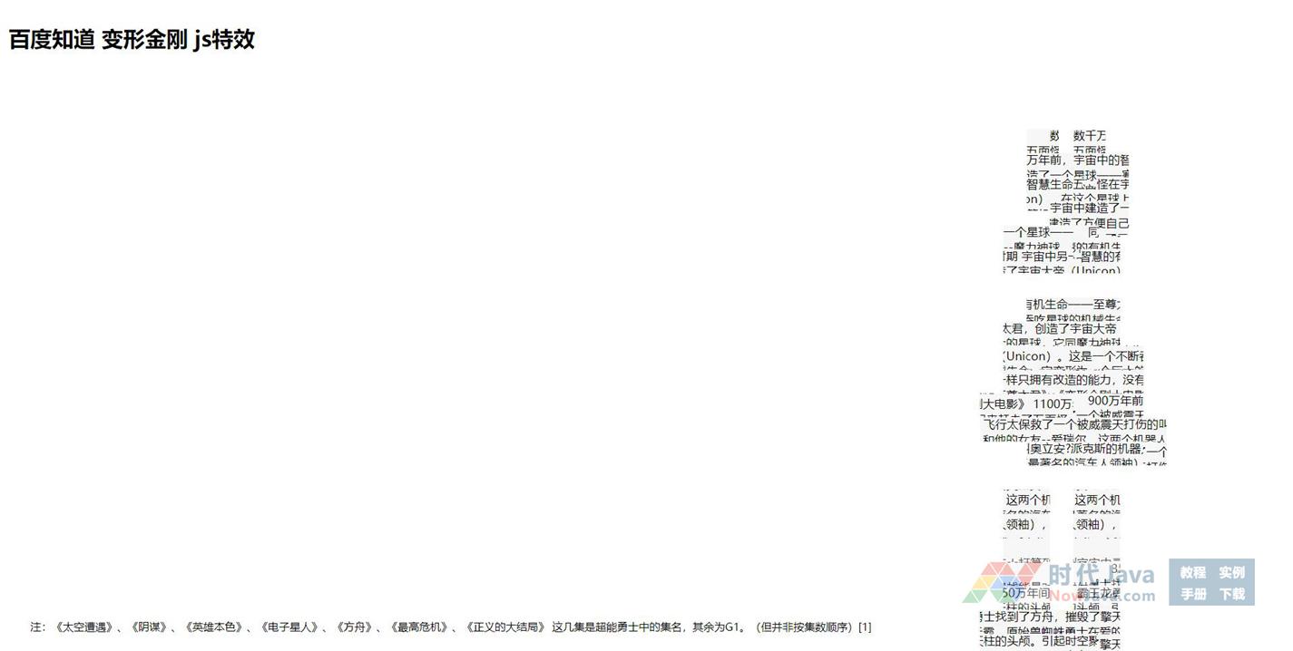 百度知道搜索结果的变形金刚JS特效,浏览器必须在IE8或者Firefox、Chrome内核才能见到效果。