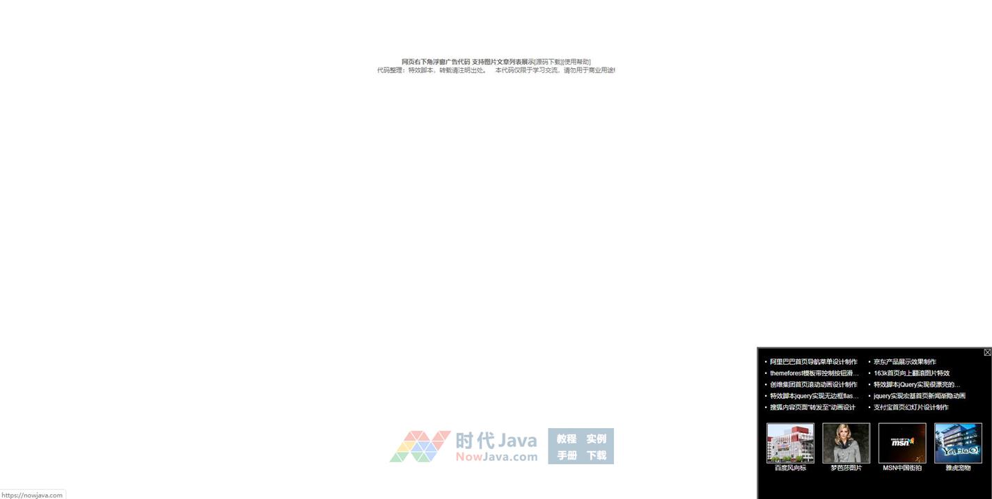 支持图文混合列表的网页右下角浮窗广告特效源码