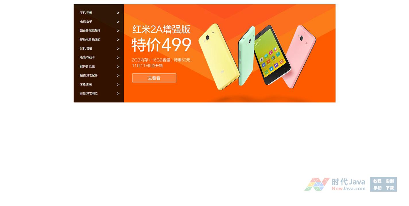 jQuery小米官网竖直分类导航菜单基于jquery-1.4.2.min.js制作,页面左侧竖直显示详细产品分类导航菜单。