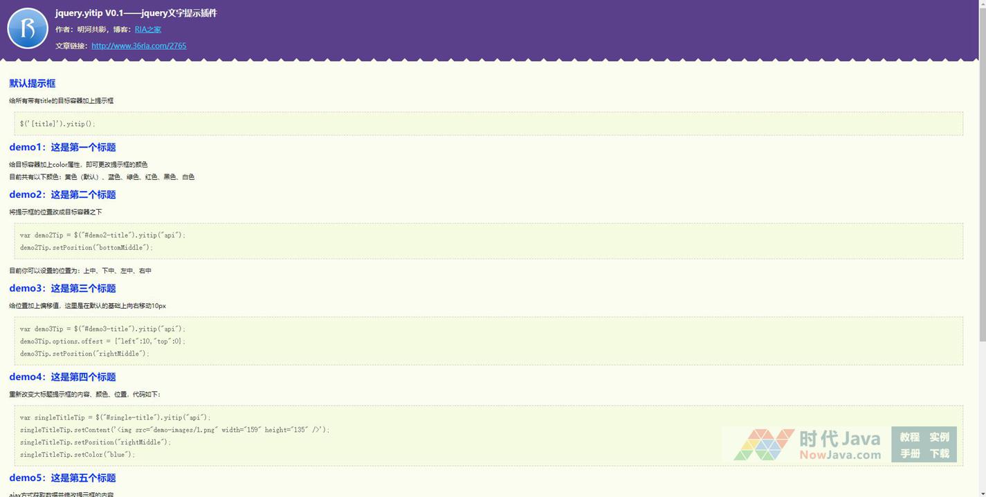 <a href="//www.36ria.com/" title="yitip的作者为明河共影" id="demo3-title">demo3:这是第三个标题</a>